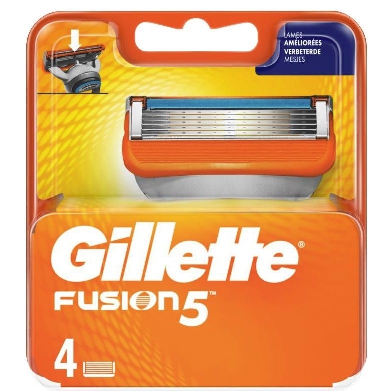 Gillette Fusion5 Scheermesjes 4 stuks verpakking. Het comfort van 5 antifrictie mesjes met Flexibele Comfort Guard: 15 microribbels trekken zachtjes de huid glad, wat zorgt voor een gladder en comfortabeler scheerresultaat. De verbeterde Indicator Lubrastrip met vitamine E en Aloƫ zorgt voor optimale scheercondities. Gillette Fusion mesjes bevatten ook 1 mesje op de achterzijde, dit is ideaal voor de lastige plekken (zoals onder de neus).