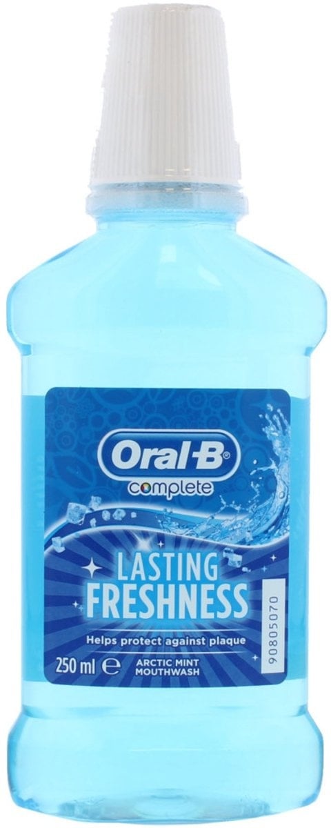 Oral-B Complete Lasting Freshness Artic Mint Mondwater 250 ml – frisse adem en complete bescherming. Dagelijkse mondverzorging, frisse mintsmaak.