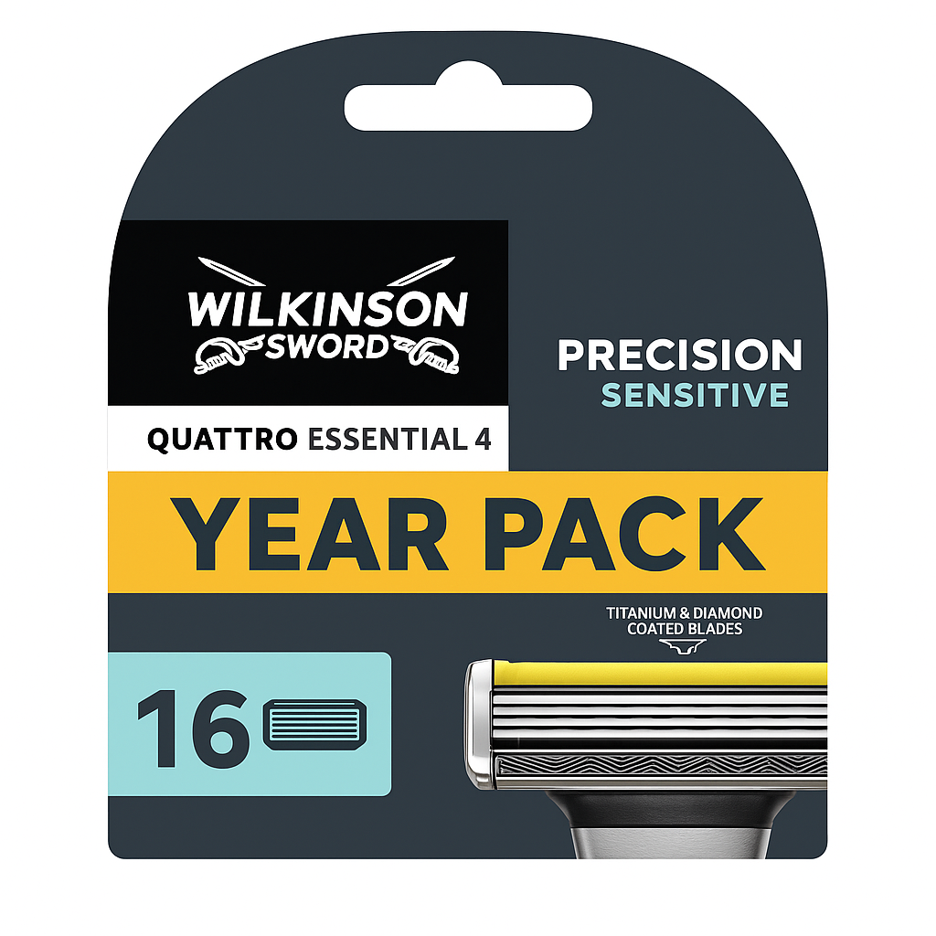 Ervaar het gevoel van een gladde scheerbeurt met Wilkinson Sword Quattro Titanium Sensitive – 16 mesjes